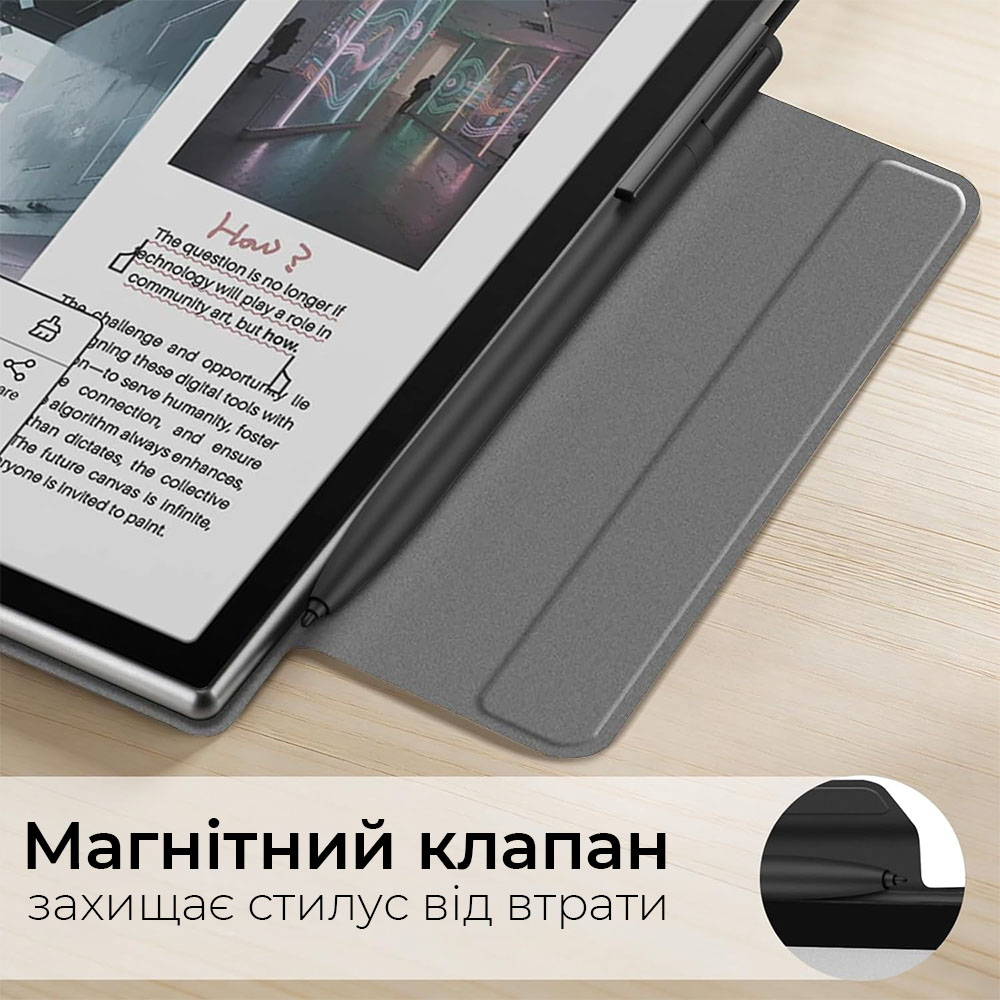 Тонкий и продуманный чехол для Onyx Boox Note Air 5 C, который сочетает защиту, удобство в использовании и минималистичный дизайн. Подойдёт для ежедневного использования — как для чтения, так и для работы с заметками.