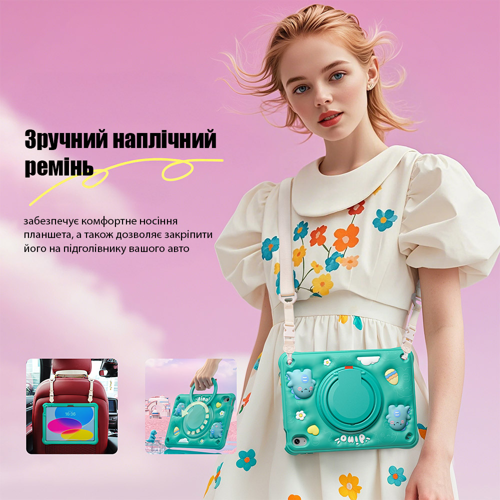 Противоударный чехол Galeo Cute Animals не только защитит iPad вашего ребенка, но и придаст ему неповторимо милый вид благодаря объемным фигуркам динозавриков на задней крышке.