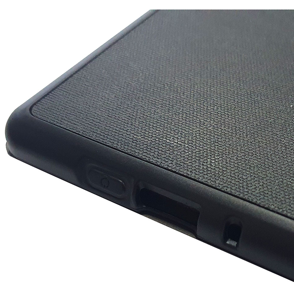 - Зовнішня частина обкладинки виготовлена із міцної штучної шкіри, всередині верхньої кришки знаходиться тонка жорстка пластикова пластина. Контейнер, в який вставляється книга, виготовлений не з пластику, як у більшості інших чохлів, а з термопластичного поліуретану (TPU). Цей матеріал має чудові захисні властивості. Завдяки своїй еластичності та пружності, TPU ефективно поглинає енергію удару, при цьому обкладинка за жодних умов не трісне під час падіння.