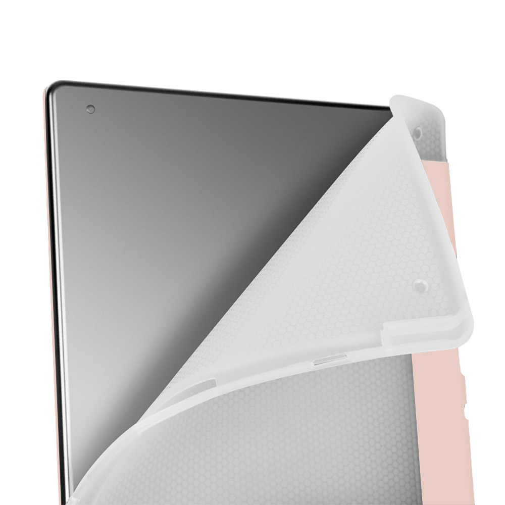 - Кріплення, при якому книжка вставляється в основу з TPU, надійно фіксує пристрій, виключаючи можливість випадкового вислизання. TPU чудово амортизує удар і, на відміну від пластику, не може тріснути під час падіння.