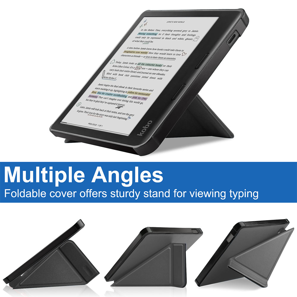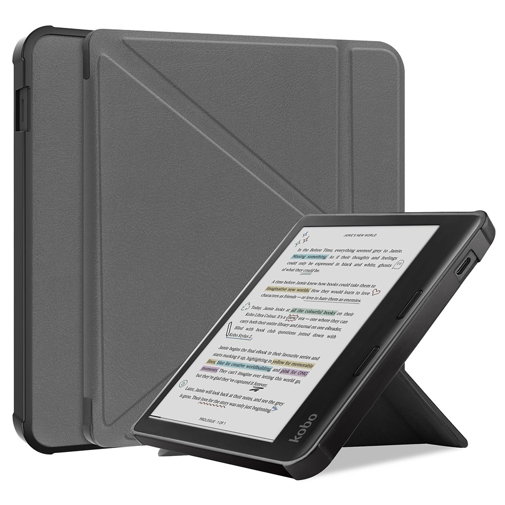 - Чохол лінійки Origami розроблений спеціально для електронних книжок Kobo Libra Colour. Ідеально підходить за розміром, залишає доступ до роз’єму живлення і практично нічого не додає до товщини книжки.