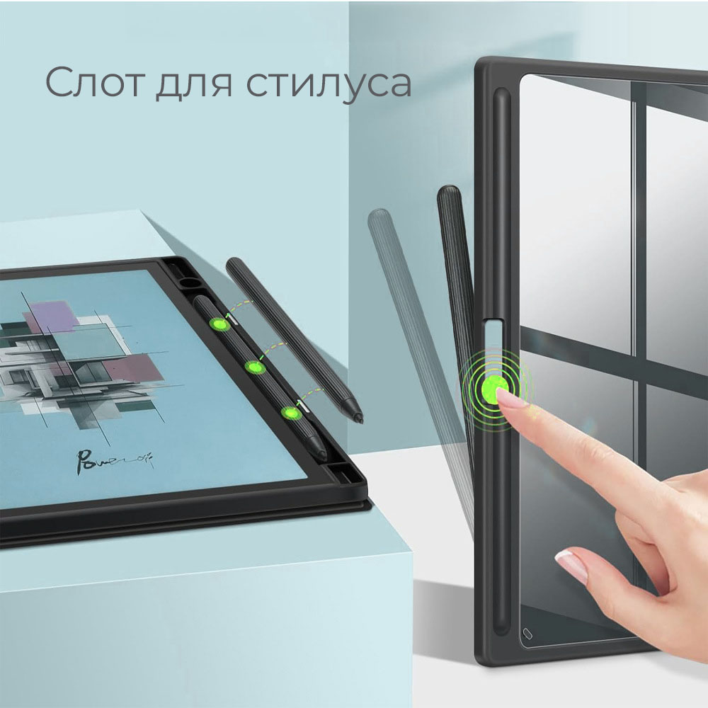 - Тримач для стилуса — зручне зберігання без ризику загубити.
