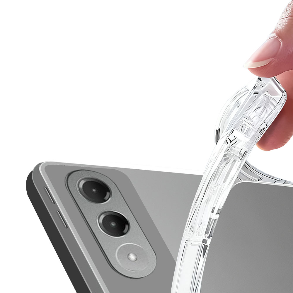 - Кріплення, в якому планшет вставляється в TPU каркас, надійно фіксує пристрій, унеможливлюючи випадкове вислизання.