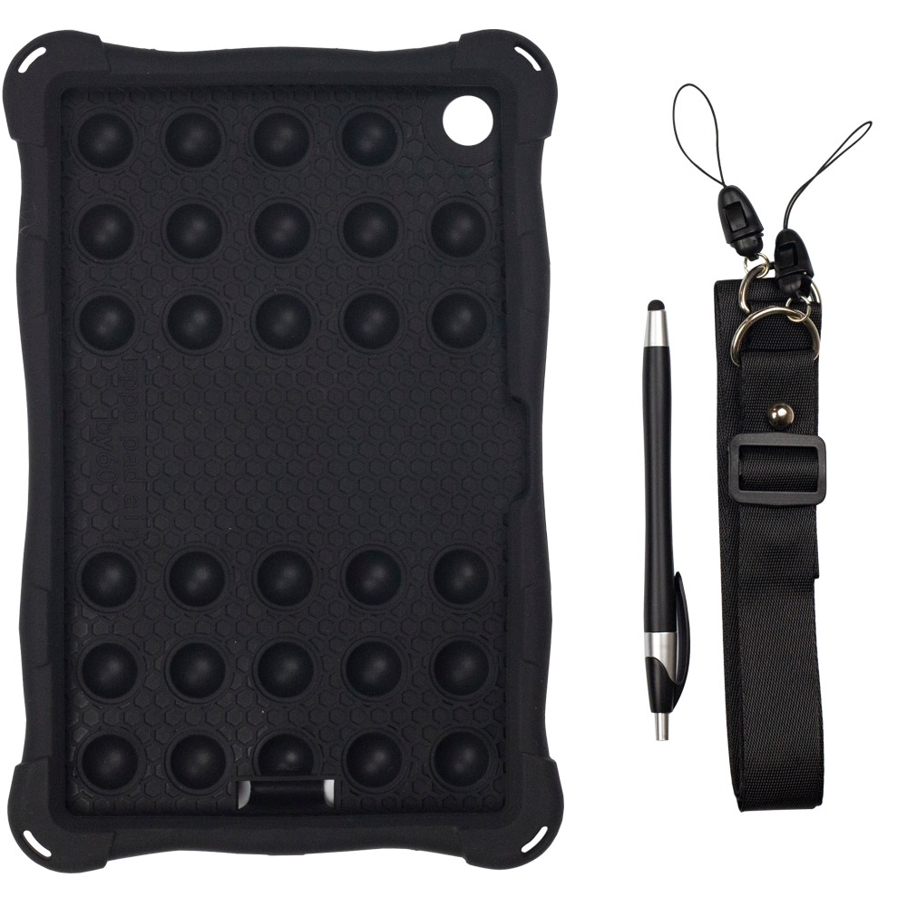 - В комплект входить зручний ремінь, що дозволяє повісити планшет на шию або закріпити його на підголів’ї в авто, а також ємніний стилус для екрану.