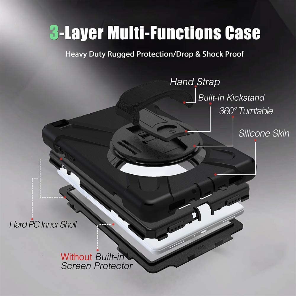 - Тришарова структура, що забезпечує максимальну ударостійкість. Чохол складається з пластикової основи, в яку вставляється планшет, товстого зовнішнього силіконового шару, що забезпечує амортизацію удару, та ще однієї пластикової рамки, яка вдягається поверх дисплея.