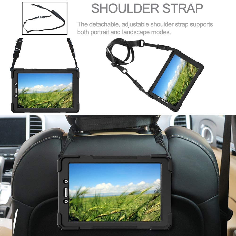 - У комплект поставки входить ремінь, що дозволяє повісити планшет у чохлі на шию або на підголовник в авто.
