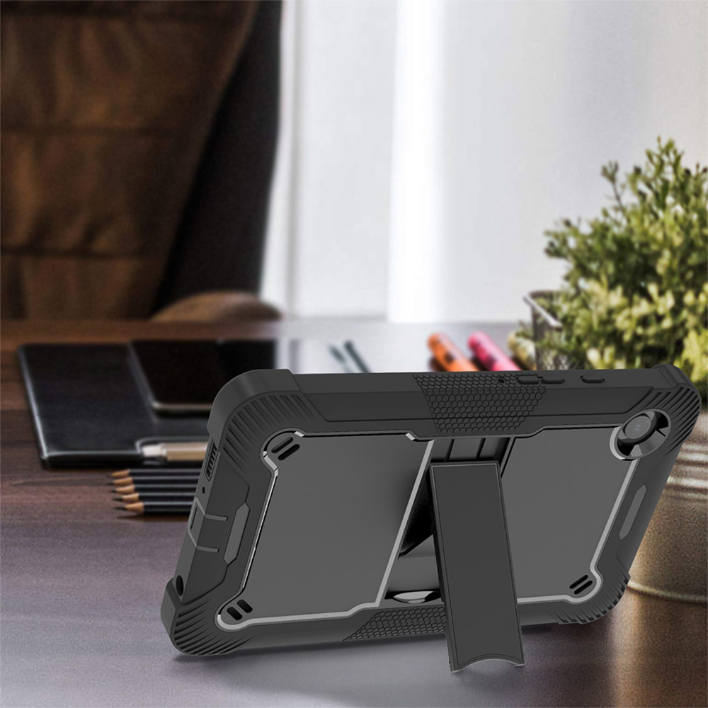 - Тришарова структура, що забезпечує максимальну ударостійкість. Чохол складається з пластикової основи, в яку вставляється планшет, товстого зовнішнього силіконового шару, який забезпечує амортизацію удару, та ще однієї пластикової рамки, яка вдягається поверх дисплея.