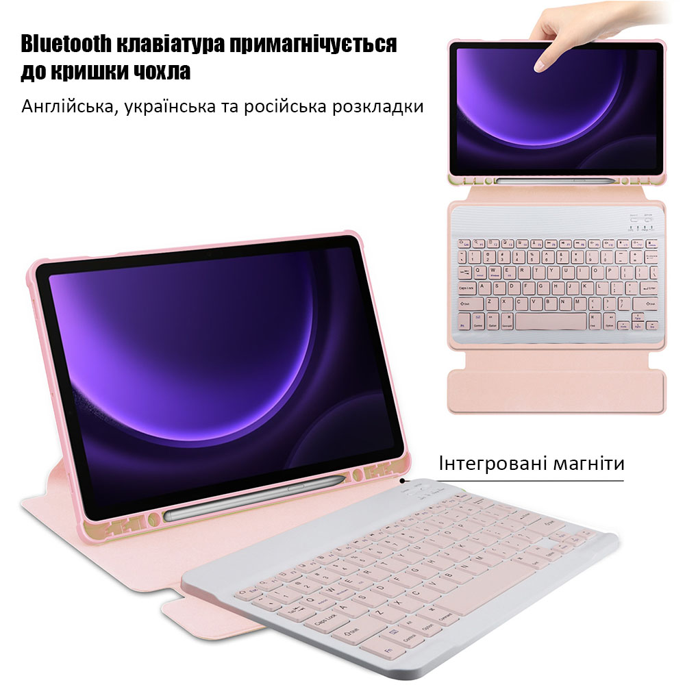 Чохол з клавіатурою для Samsung Galaxy Tab S10 FE / S9 / S9 FE Galeo Rotating (En+Ua+Ru) Pink