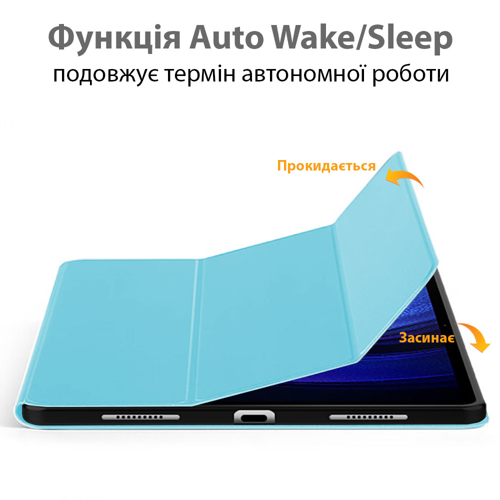 - Енергозберігаюча функція Wake/Sleep: коли кришка чохла закривається, екран автоматично гасне, коли відкривається — планшет прокидається.